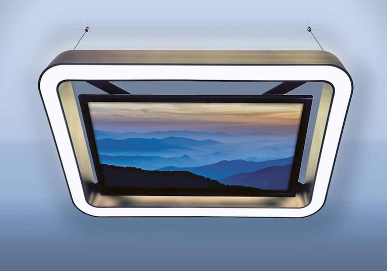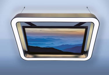 Dimensions : 1600 × 850 × 120 mm – Fixation en 4 points par câbles
