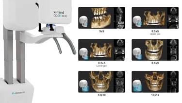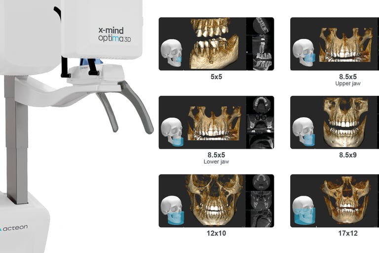 L'offre complète de champs de vision (FOV), de 5x5 à 17x12 cm (Ø x H), rend le X-MIND® optima 3D idéal pour une large gamme de procédures dentaires, de la dentisterie générale à l'orthodontie et à la chirurgie maxillo-faciale
